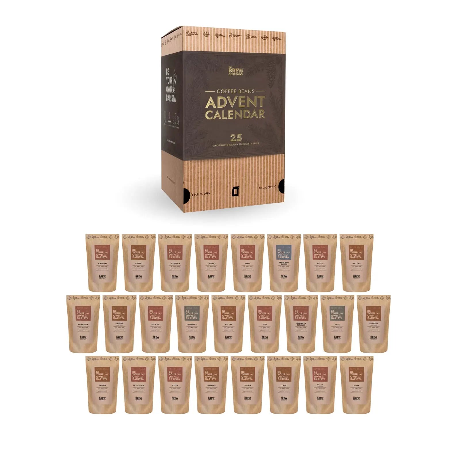 Celebrate the season with the Coffee Beans Advent Calendar — your countdown to Christmas filled with rich aromas and global coffee craftsmanship. Each of the 25 days reveals a 50g bag of freshly roasted specialty beans from distinct origins across the world. Every cup captures the passion of small-batch roasters and sustainable cooperatives, bringing a unique flavor story to your morning ritual. From smooth Brazilian notes to bold African blends, this collection transforms your holiday mornings into a sensory journey of warmth, comfort, and discovery.