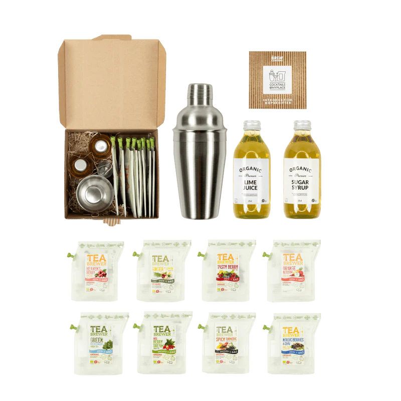 Šių kokteilių paslaptis slypi mūsų aukštos kokybės ekologiškų arbatos mišiniuose, supakuotuose į inovatyvius „Teabrewer“ maišelius. Kiekvienas iš 8 „Teabrewer“ maišelių turi savitą skonį, pagamintą iš 100 % ekologiškos ir natūralios žolelių arbatos su vaisių gabalėliais. Tiesiog įpilkite savo mėgstamo alkoholio, sumaišykite su rinkinyje esančiomis ekologiškomis laimo sultimis ir cukraus sirupu, suplakite ir mėgaukitės.